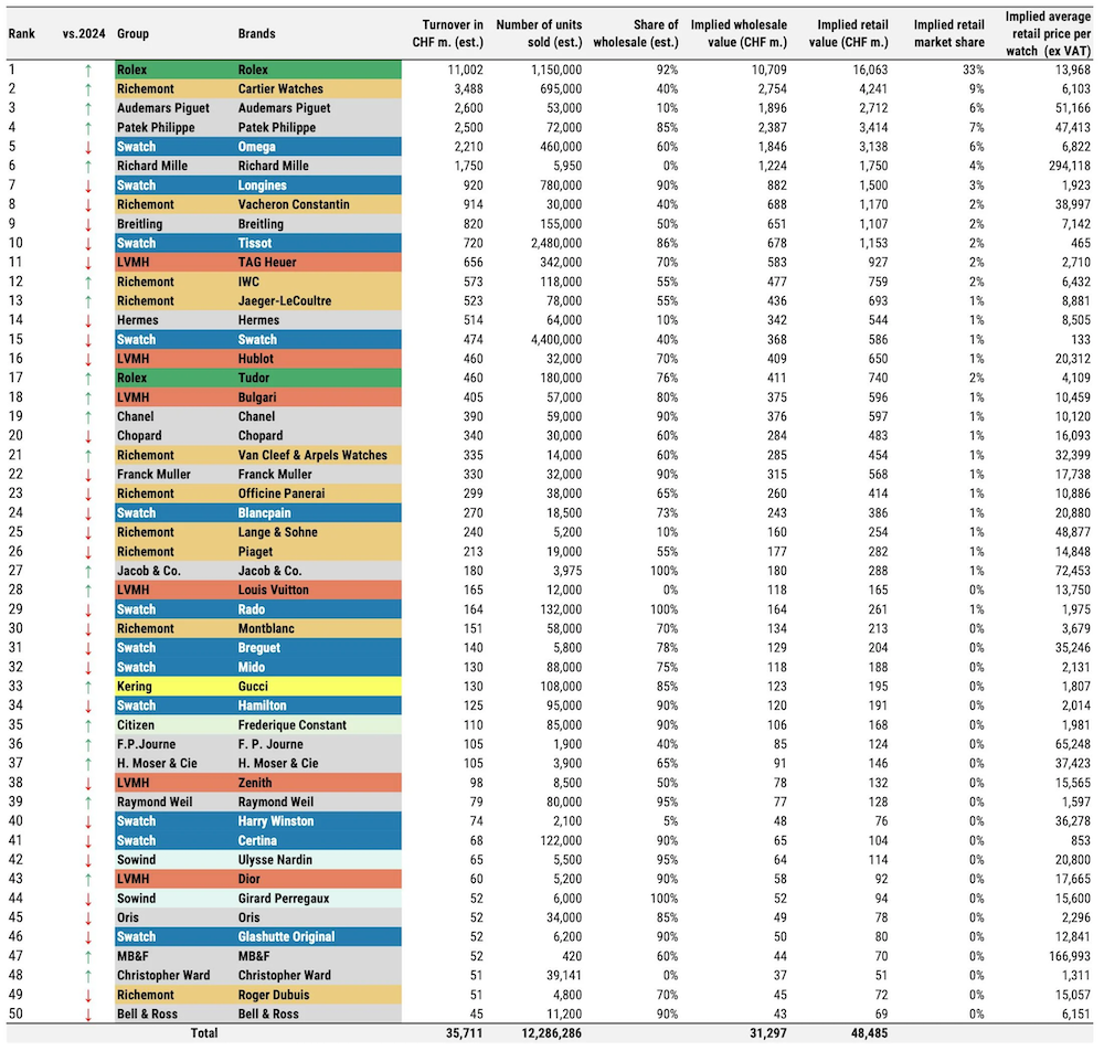 「瑞士鐘錶50強」2025成貴價錶天下?Rolex繼續稱霸,獨立製錶品牌逆勢增長!
