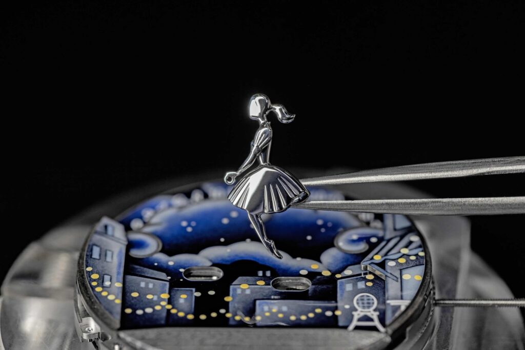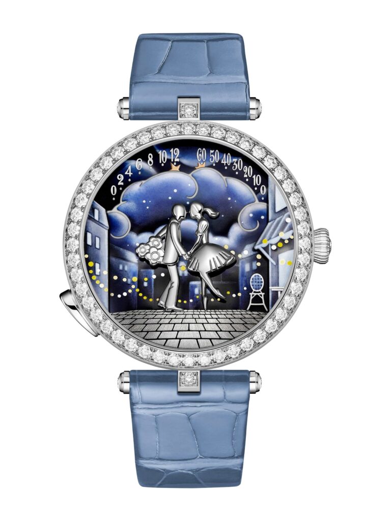 Van Cleef & Arpels的故事始於愛情,自1906年於巴黎芳登廣場22號創立以來,便因一段浪漫婚姻而誕生︒愛情不僅是世家的靈感泉源,更是其製錶哲學的根基,加上精湛工藝與敘事美學,成了世家腕錶的靈魂所在︒每件時計創作皆超越傳統報時功能,化作詩意盎然的藝術世界︒早在1930年代,世家已開始將高級珠寶的精湛工藝融入腕錶創作,而真正的轉捩點則出現在2006年,Poetic Complications詩意複雜功能系列正式問世,自此奠定了世家的時計創作風格︒世家將機械技術︑珍稀材質與métier d’art匠作藝術融為一體,錶盤不再只是報時的介面,而是一幅會動的畫布——以金雕︑琺瑯︑微型彩繪與寶石鑲嵌交織出詩意盎然的景象,使腕錶成為腕上的藝術品︒