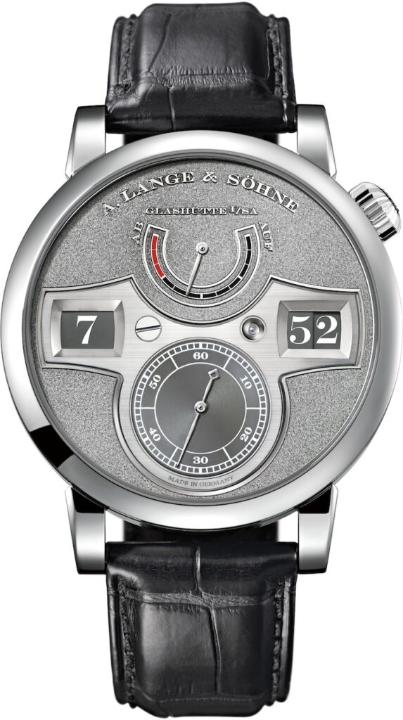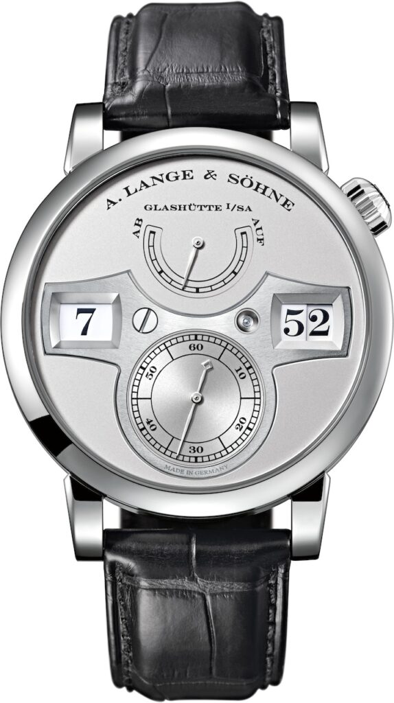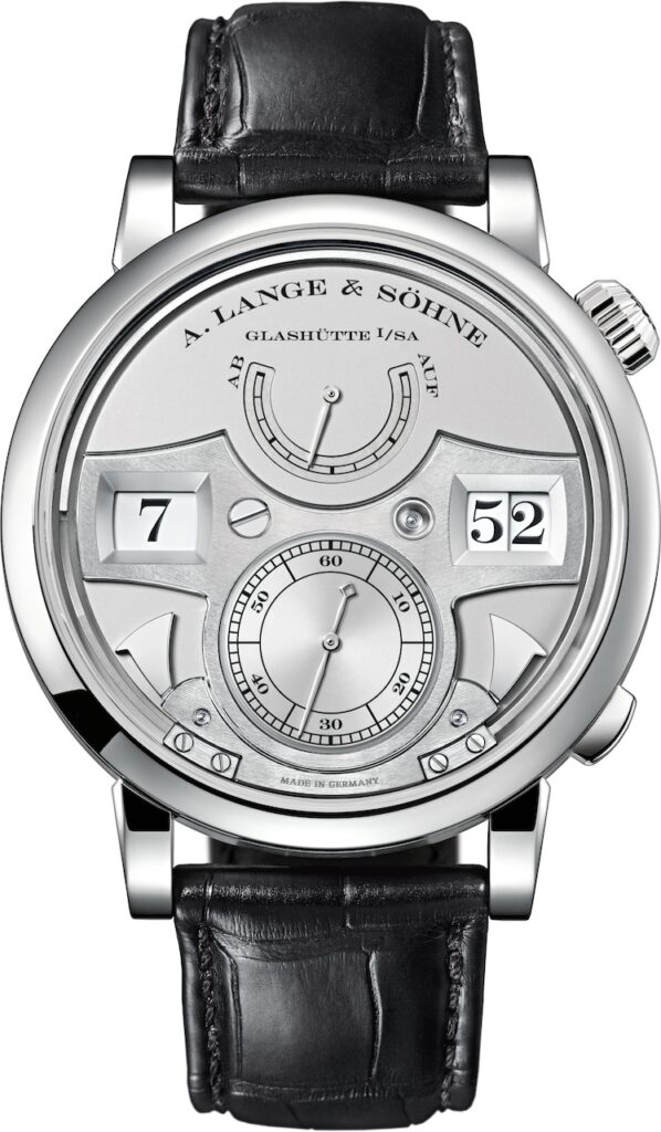 在面世初期,ZEITWERK系列有黄金錶殼襯象牙銀色錶盤、白金錶殼襯黑色錶盤、玫瑰金錶殼襯銀白色錶盤,以及限量200枚的鉑金錶殼襯銀灰色錶盤版本;搭載L043.1手上鍊機芯,2.5 Hz擺頻,動力儲存約36小時。