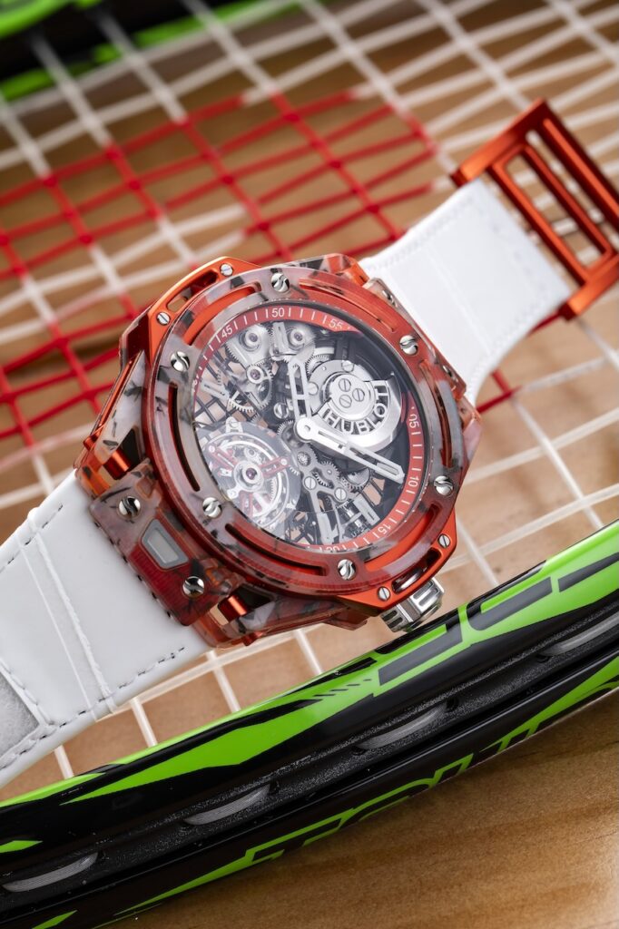 今年的LVMH Watch Week,Hublot就推出了兩款與運動有關的聯乘限量版腕錶,第一款是與當今網球壇上贏取了最多大滿貫男單冠軍的克羅地亞球星祖高域Novak Djokovic合作推出的Big Bang Tourbillon Novak Djokovic GOAT Edition。
