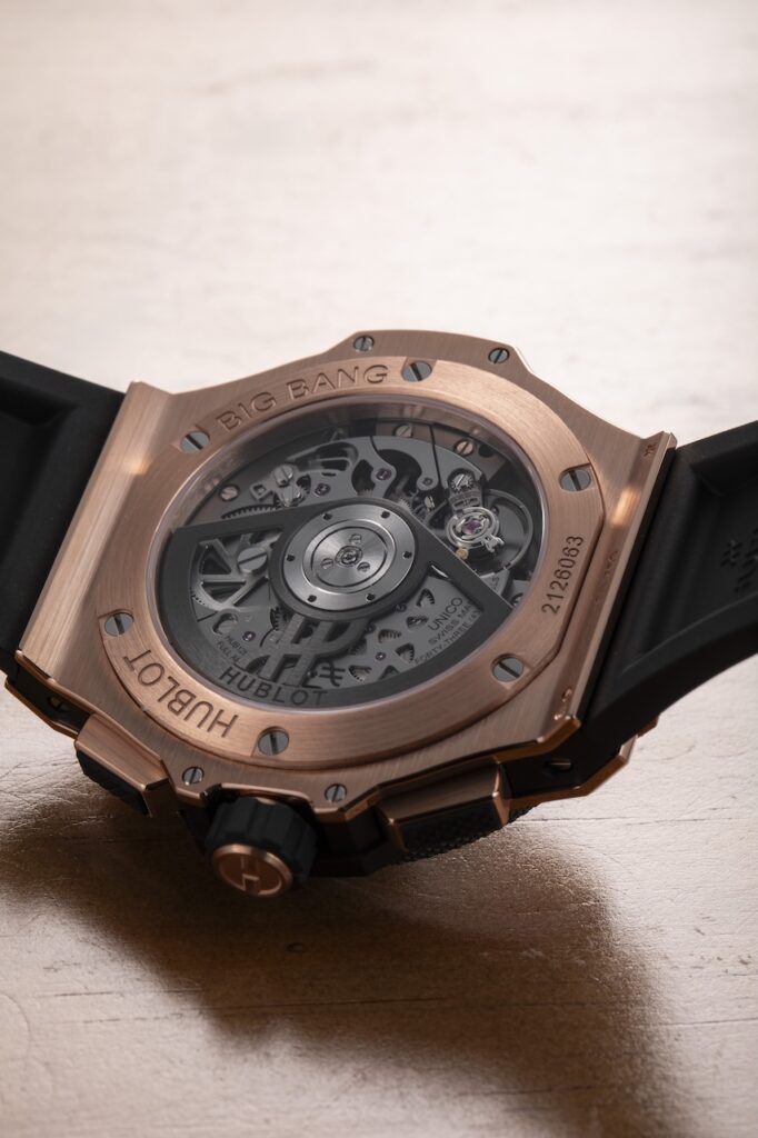 最後登場的是Big Bang Original Unico。Hublot於2005年推出全新Big Bang系列腕錶,令品牌走進另一個高峰。2025年,品牌慶祝Big Bang系列誕生20週年,推出多款忠於當年設計的限量腕錶。今年,品牌回歸初心,推出四款同樣採用直徑43毫米錶殼搭配黑色碳纖維格紋錶盤的Big Bang Original Unico腕錶,均搭載MHUB1280 Unico飛返計時自動機芯,黑色粒紋橡膠錶帶。Big Bang Original Unico Titanium採用鈦金屬錶殼和錶圈,售價約$143,800;Big Bang Original Unico Black Magic採用黑色陶瓷錶殼和錶圈,售價約$160,800;Big Bang Original Unico Titanium Ceramic採用鈦金屬錶殼和黑色陶瓷錶圈,售價約$152,300;最後的Big Bang Original Unico King Gold Ceramic採用18K King Gold錶殼和黑色陶瓷錶圈,售價約$279,900。