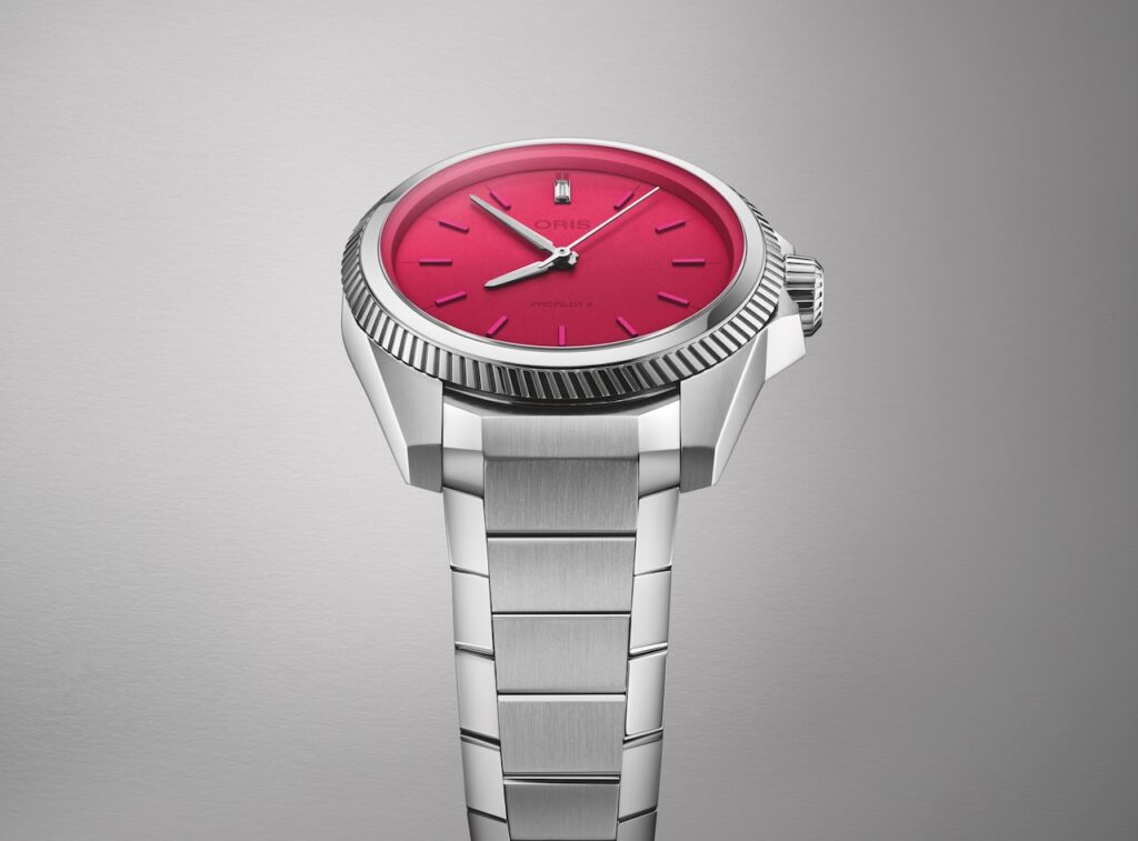 兩年前,Oris與《布公仔樂園》(The Muppet Show)合作推出一款清新鮮綠的Kermit青蛙(Kermit the Frog)聯乘錶款成為話題作。今年,Oris再度與《布公仔樂園》聯手推出新作,以Kermit青蛙的伴侶豬小姐(Miss Piggy)當上主角,配上艷麗高貴的粉紅色鑲鑽錶盤!這對相隔兩年前後腳推出的情侶檔腕錶,同屬Oris的ProPilot X系列,一大一小的錶徑,更是情侶對錶的經典設定(Kermit青蛙的錶徑約39毫米,豬小姐的錶徑則只有34毫米)。