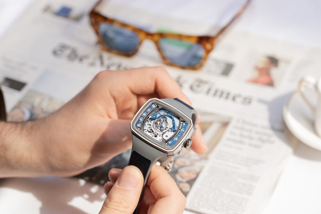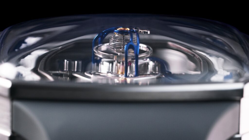 現時大約只有10個瑞士品牌有能力製作自家游絲,而Hautlence便跟姊妹品牌Moser一樣,用上同集團Precision Engineering AG製作的游絲。Hautlence最近推出的Helix Series 1腕錶,在其陀飛輪機芯中配上旋轉的圓柱形游絲。品牌將陀飛輪(和圓柱形游絲)置於錶盤正中,作為全錶運作的焦點。腕錶的小時和分鐘採用逆跳顯示,分別設置在錶盤左右兩側,逆跳顯示的跳動感與中央螺旋形的陀飛輪自轉成強烈視覺對比,機械動感十足。