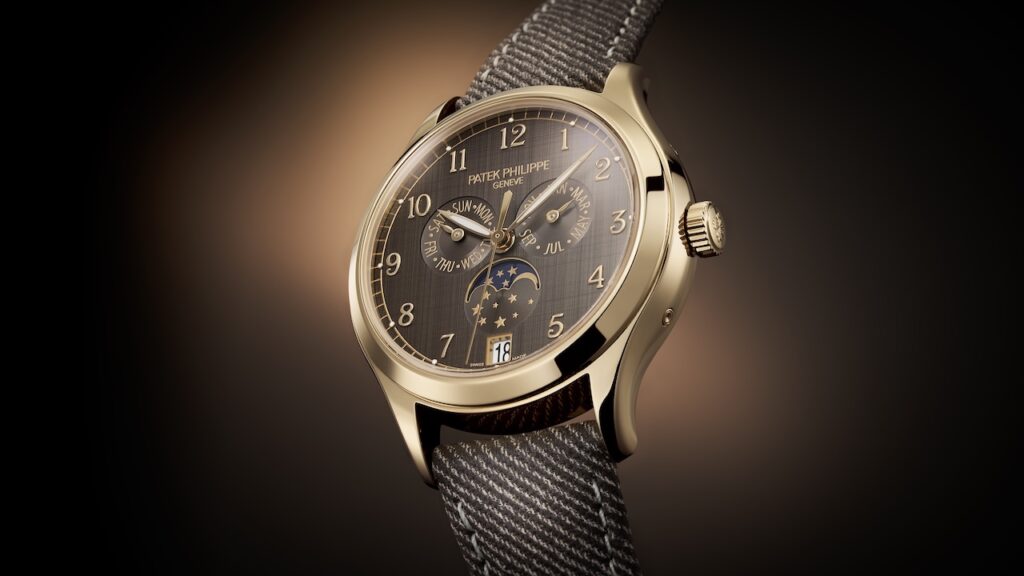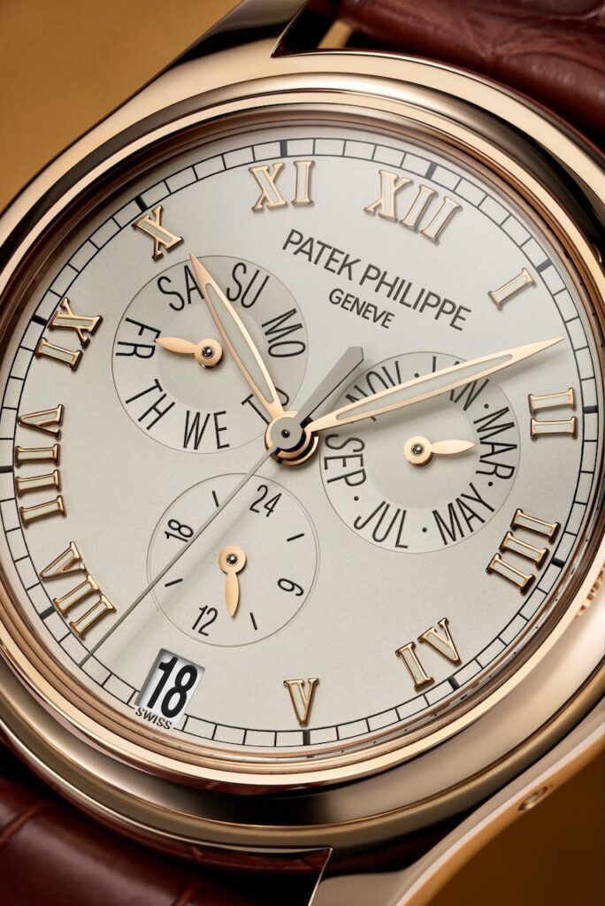 去年在Watches & Wonders,Patek Philippe便發表了最新演譯的年曆錶作Ref. 4946R-001。新錶採用直徑38毫米、僅厚11毫米的玫瑰金錶殼,搭配栗子啡色橫直間山東絲調紋理的錶盤,時針與時標刻度同為玫瑰金材質,為實用的月相年曆錶款帶來一種溫暖經典的氛圍。這枚大小適中款式中性的年曆錶,搭載Caliber 26-330 QA LU自動機芯,配備Gyromax擺輪及Spiromax矽游絲,動力儲存約45小時。而這枚年曆月相腕錶配襯栗子色牛仔布料紋理的小牛皮錶帶,則凸顯了將功能帶入生活、為了日常佩戴而生的腕錶風格。