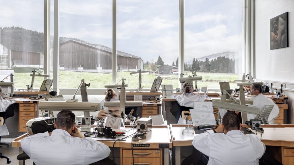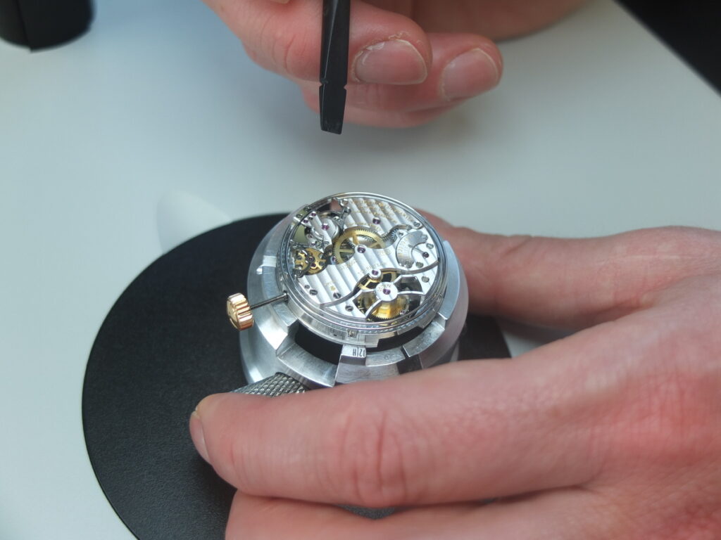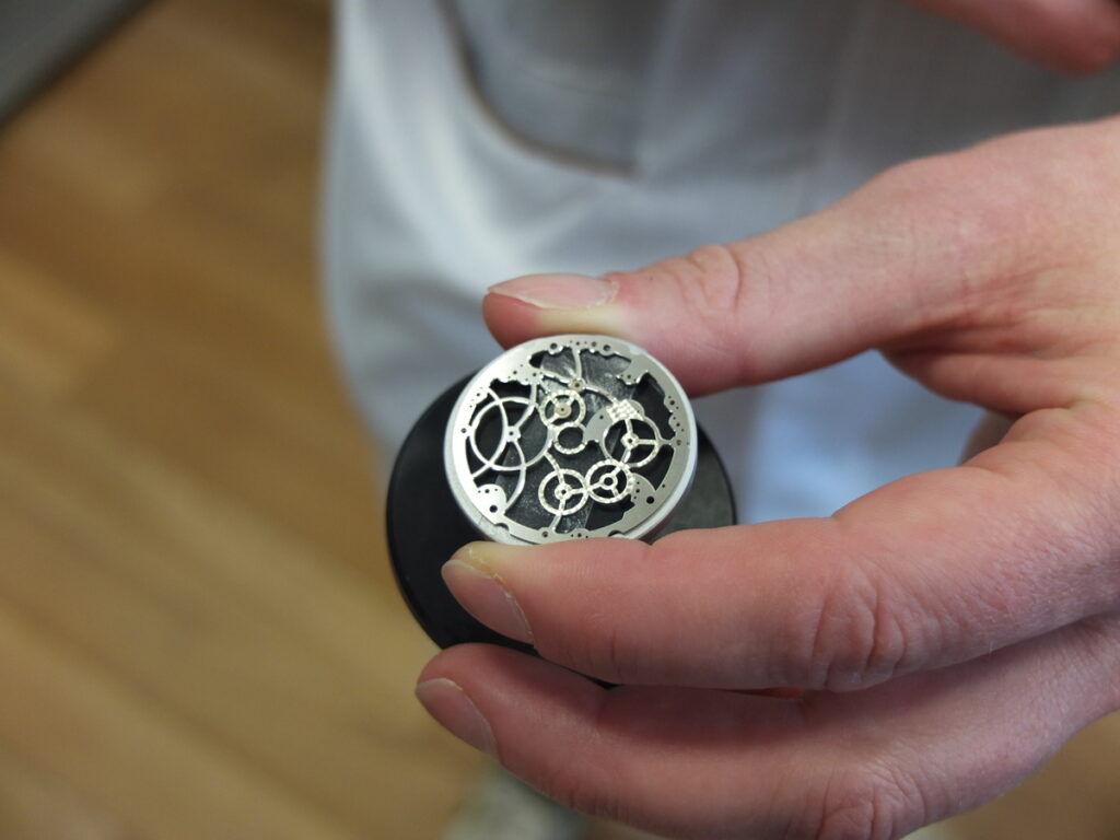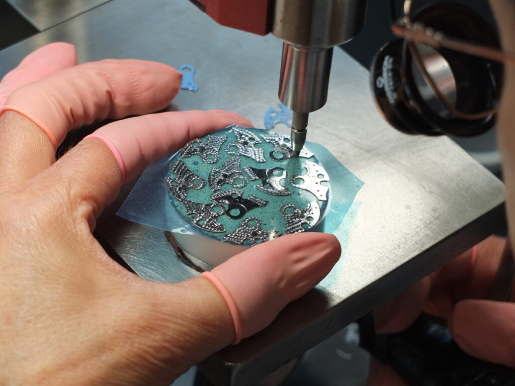 我們首先參觀的,是機芯零件的生產、打磨和裝飾,例如機芯夾板的珍珠紋裝飾和日內瓦飾紋;還有品牌著名的鏤空機芯,在零件沖壓出來後,邊緣會比較銳利,必須進行打磨和裝飾,這裏講求的技巧都得依靠經驗。然後我們去參觀品牌的CNC車床,那裏生產細小的製錶零件,例如齒輪、螺絲、機芯夾板等。所有的機器都非常先進,與傳統製錶工藝卻沒有違和感。