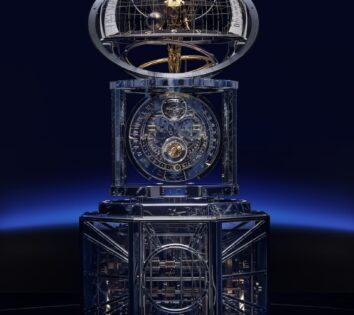 今年江詩丹頓的主題是Retrograde Date,除了三大系列,還有這枚Les Cabinotiers大複雜功能腕錶。新錶包含11項複雜功能,有三問報時、陀飛輪、萬年曆、精密月相和星空圖。正面可以看到偏心式時分盤,其中間是特大南北半球月相顯示,上方是180°瞬跳兼逆跳日曆,左下方是半瞬跳星期,右下方則是瞬跳月份,而3點位置就有閏年顯示。背面可以看到陀飛輪、24小時制式恆星時顯示和星空圖。直徑46毫米白金錶殼,厚度17.10毫米,搭載獲Poinçon de Genève日內瓦印記的2755 TMRCC QP手上鍊機芯,由774塊零件組成,2.5 Hz擺頻,動力儲備約58小時。獨一無二,只此一枚。