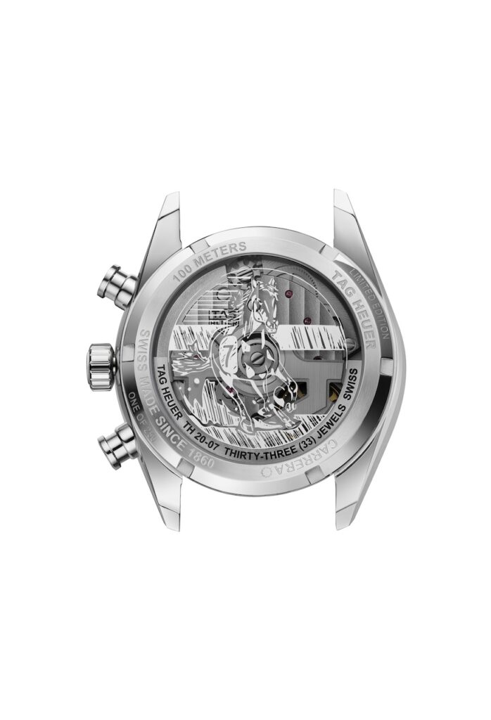 TAG Heuer Carrera Chronograph Year of the Horse限量腕錶將賽道熱血與東方生肖意象融為一體,不僅記錄時間流轉,更寄託勇往直前、把握良機的祝願。馬年計時腕錶沿用經典的直徑39毫米Glassbox錶殼,錶盤採用暖調煙火色系,以深邃赤紅與典雅香檳金漸變交織,9點鐘位置日期顯示窗的數字「7」,被簡約呈現的漢字「马」所替代,呼應馬在十二生肖中位列第七的傳統排序,襯鍍18K 5N玫瑰金的指針、時標;透過藍寶石水晶底蓋,將自製TH20-07自動機芯的精妙運作盡收眼底,備有約80小時動力儲存,底蓋印有奔馬圖騰,匹配馬年「日行千里」的意象,配備經拉絲和拋光處理的七珠鏈錶帶,符合人體工學設計,確保長時間佩戴舒適,限量250枚,每枚腕錶均有「LIMITED EDITION」和「One of 250」標識,並以新年喜慶色彩的專屬禮盒包裝,售價約$62,150。
