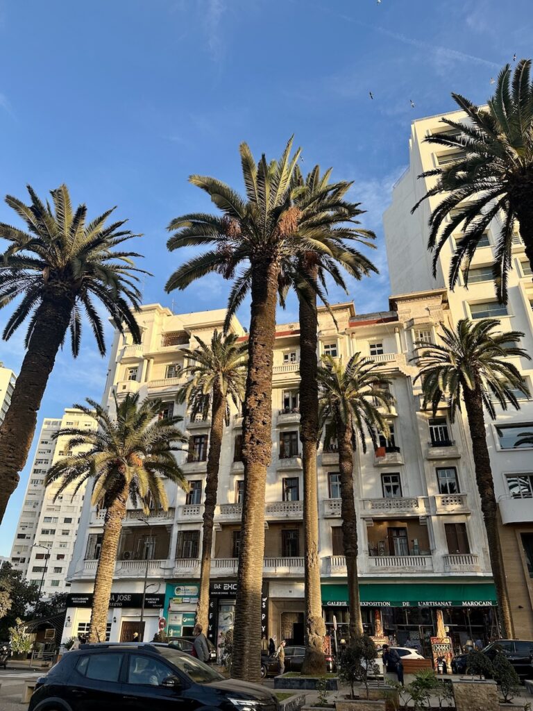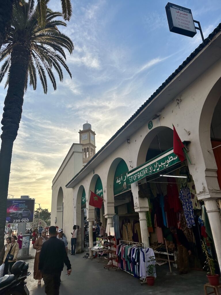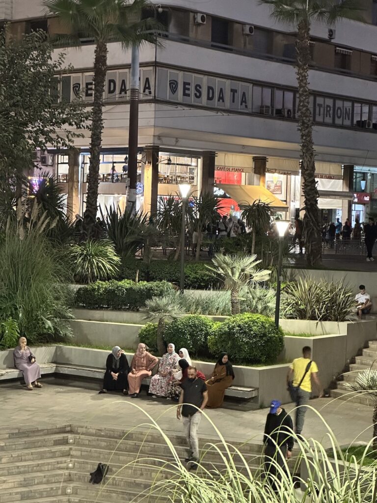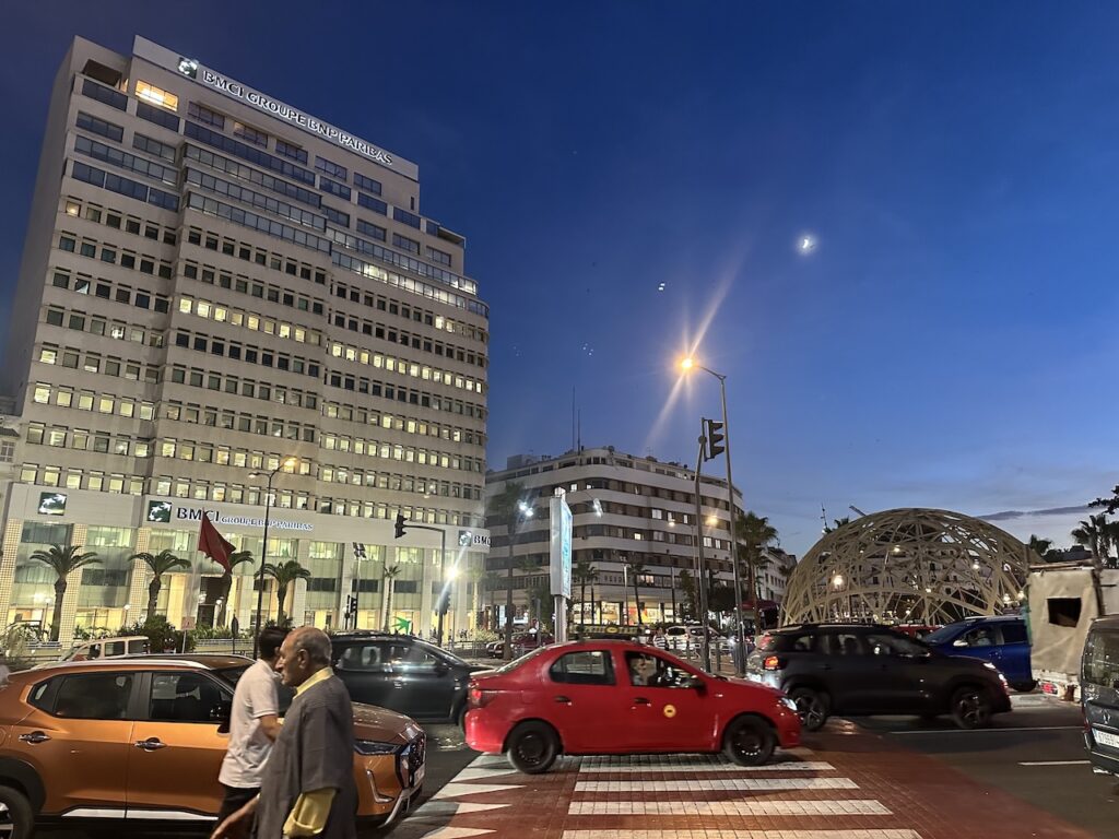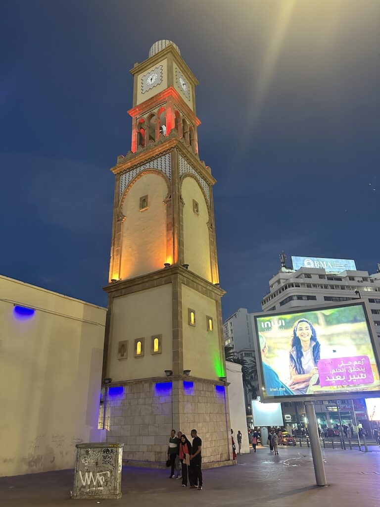 記得有朋友說過,時間不多就減掉卡薩布蘭卡吧,除了海上清真寺也沒什麼好看。對此我不以為然。我以卡城為起點和終站,午後在海邊的火車站大啖麥當勞;飯後無聊,散步到昔日的法國廣場一帶(即如今的United Nations Square),坐在最繁忙的街角咖啡店,看着對面舊城的鐘樓,夜色中打着奇異的燈光。我們呷着減糖的薄荷茶,終於學會了怎樣泡一壺出色的薄荷茶;夜色下的卡城,微涼,交通燈下流動的人,賣物的流動小販,間或出現的行乞瘋子,樂於替遊客解圍的路人甲⋯⋯除了不存在的北非諜影,這裏倒是一座鮮活的城,川流不息。