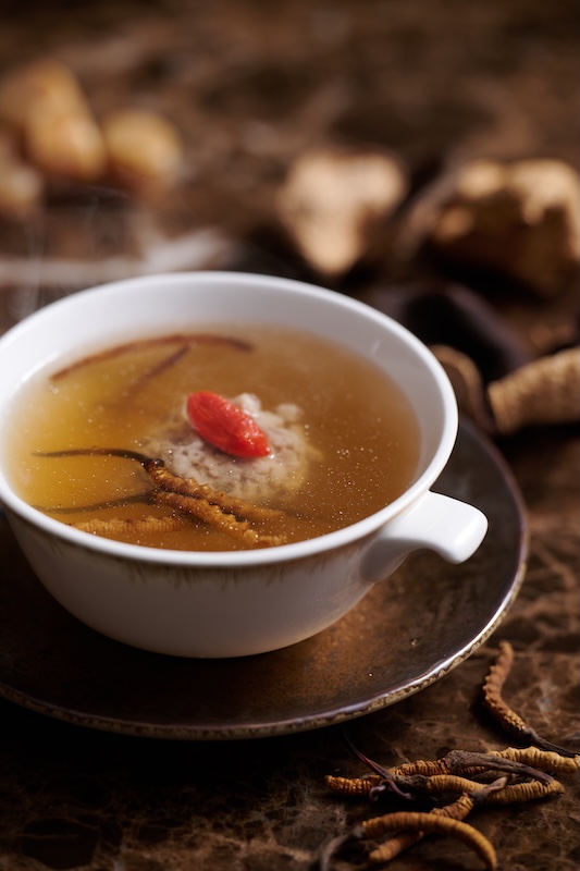 接著有曾師傅的「高湯冬蟲草燉老陳皮水鴨繡球」,是一道非常講究火候的湯品。湯色清澈卻味道深厚,老陳皮的香氣慢慢滲出,與鴨肉的甘潤融合得自然,層次細膩,餘韻悠長。