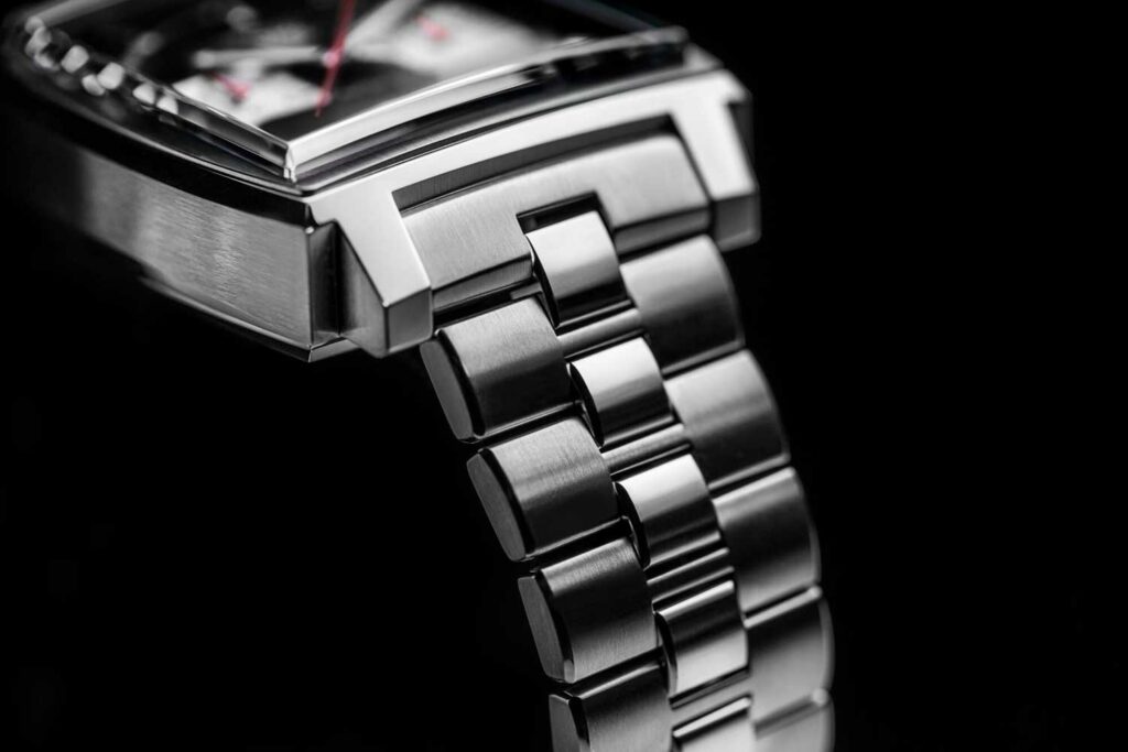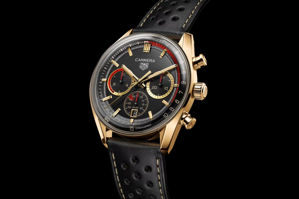 錶帶身上大大小小的圓型沖孔是賽車皮帶的一大特徵,靈感源自早期賽車的方向盤與手套,旨在減輕重量並排汗透氣。這種設計與計時碼錶更是天生一對,特別是搭配具備測速計刻度的錶款,能將那種 70 年代的賽道熱情完美還原。