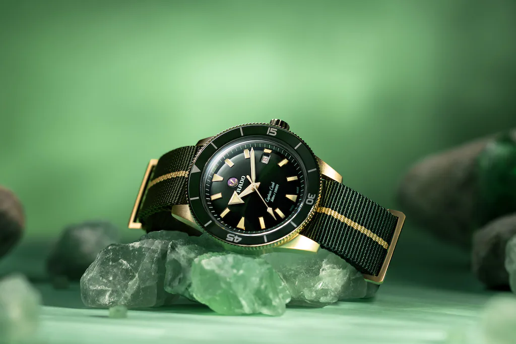 以高品質的天然橡膠或氟橡膠(FKM)搭配高級運動錶已成為當代主流。它完全防水、耐汗酸且極易清洗,是潛水或健身運動時的最佳配搭。現今的橡膠帶常結合特殊的紋路設計,如菱格紋或模擬織物紋理,讓它在具備功能性的同時,搭配休閒西裝外套亦毫無違和感。