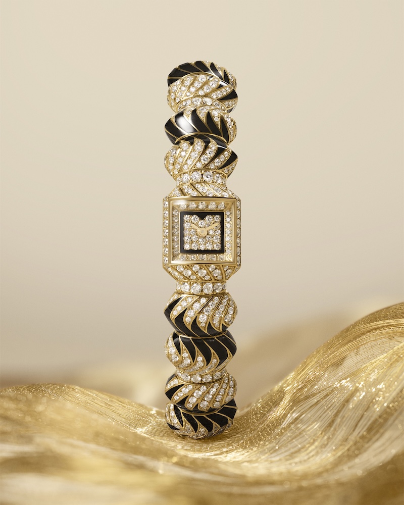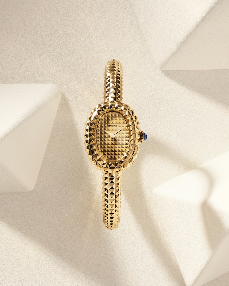 材質方面選用黃金,亦呼應Jeanne Toussaint的設計偏好,其溫潤而耀眼的光澤,亦為整體作品增添一份高貴氣息。每一枚腕錶均由瑞士Maison des Métiers d’Art工坊的工藝大師手工製作,將珠寶與製錶兩大領域的精華凝聚於腕間。